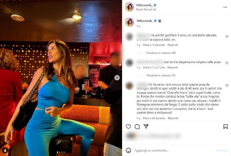Il tutto in pandant con la borsa a tracolla. Tuttavia se la maggior parte dei suoi estimatori l’ha riempita di complimenti e di cuoricini pulsanti, c’è anche chi l’ha criticata per la sua scelta di look, definendola “volgare nelle pose”. Resta comunque il fatto, al di là di alcuni commenti poco lusinghieri. che lei è assolutamente meravigliosa e che non ha nulla da che invidiare a una venticinquenne.